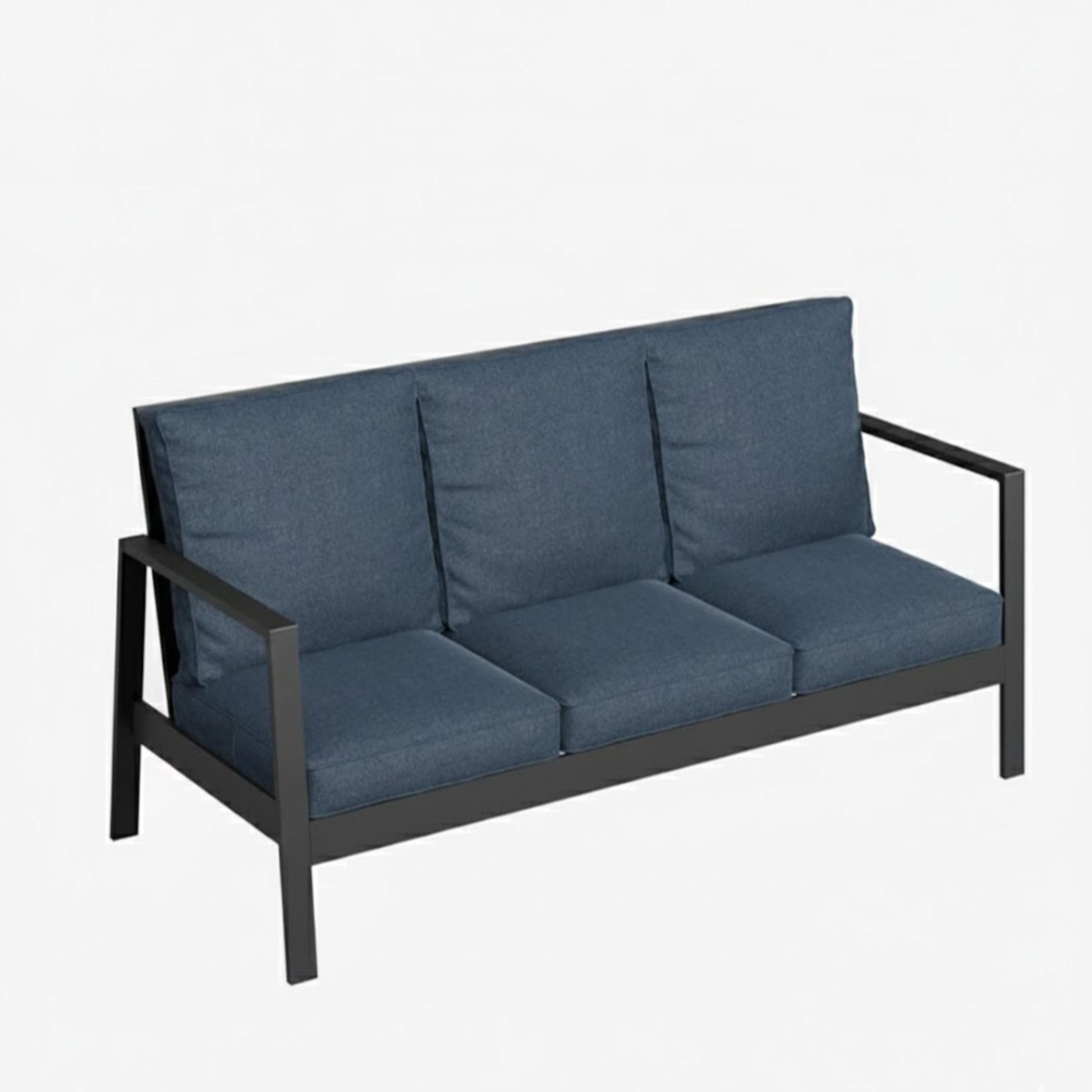 All Weather 3 Seat Patio Sofa With Cushions - Black / Blue