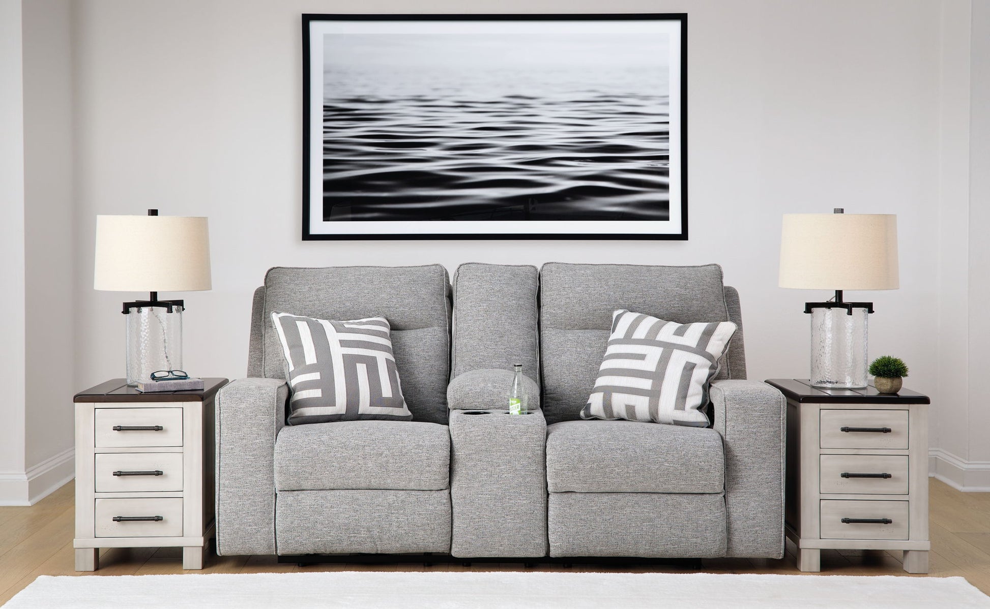 Biscoe - Pewter - Power Reclining Loveseat With Console /Adj Headrest