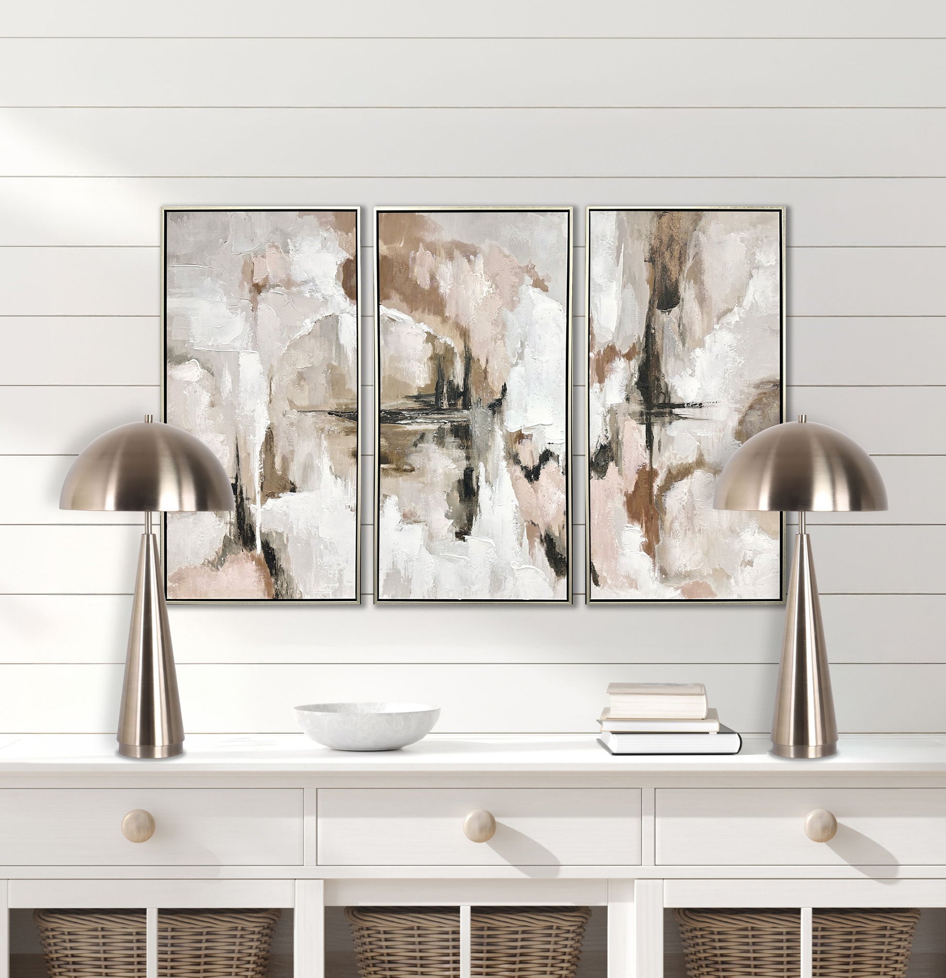 - Sleek antique brass lamp adds instant modern elegance.