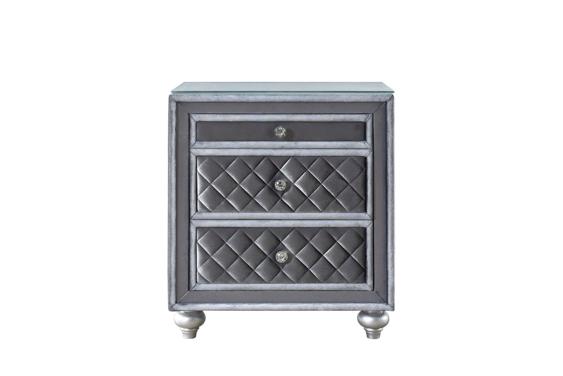 Indulge in timeless elegance and dramatic sophistication with this stunning bedroom collection, designed to make a bold statement. The centerpiece features an exquisitely tufted headboard with luxurious upholstery and intricate nailhead trim, exuding opulence and grandeur. Coordinating pieces showcase diamond-patterned tufted accents, mirrored details, and polished hardware, blending classic design with modern glamour. With ample storage and impeccable craftsmanship, this ensemble offers both style and practicality, creating a lavish retreat that embodies refined comfort and striking aesthetics. Perfect for those seeking a bedroom that radiates luxury and charm.