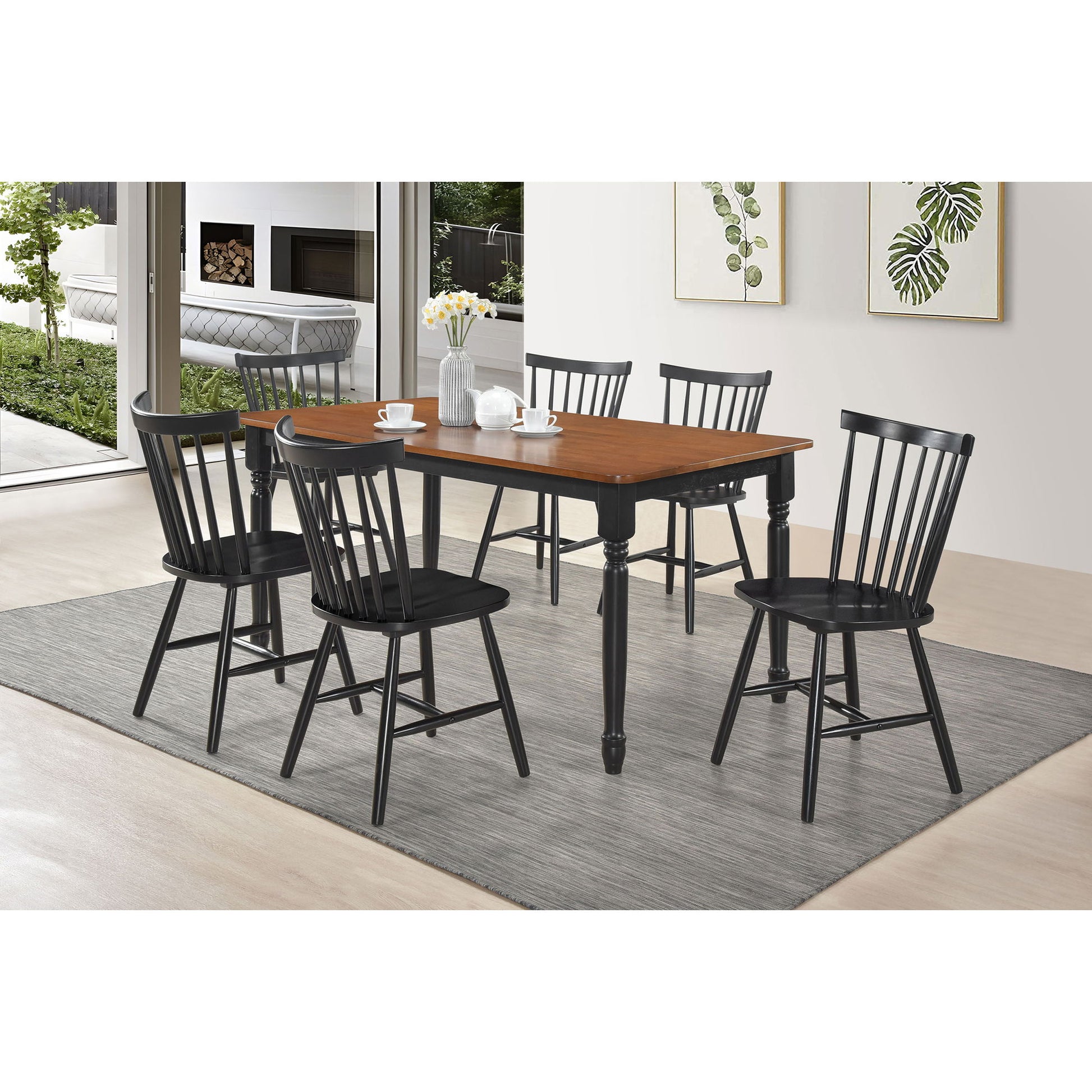 Keystone - 7 Piece Rectangular Dining Set With Traditional Windsor Chairs - Black