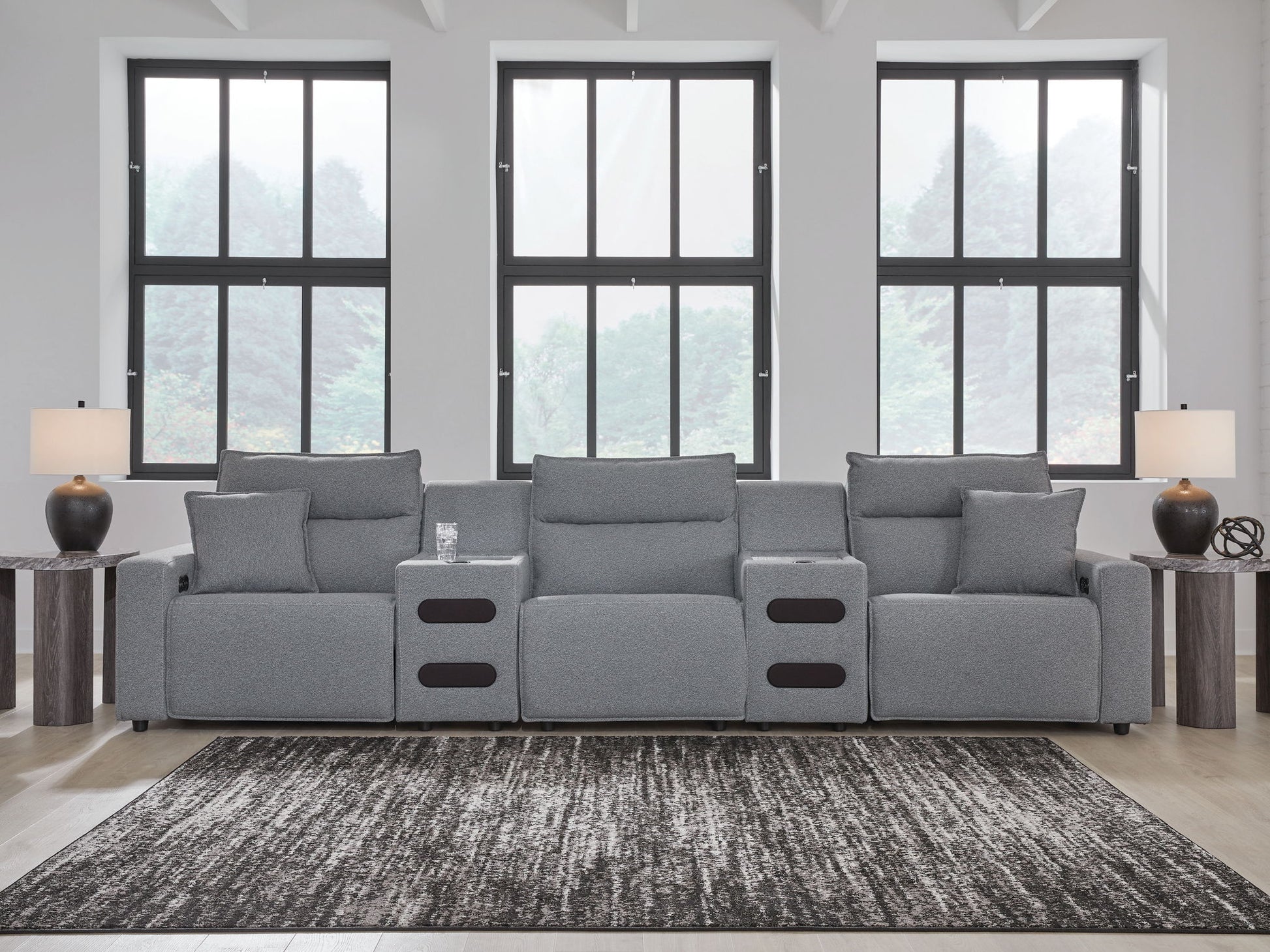 ModMax II - Salt And Pepper - 5-Piece Power Reclining Sectional With Double Chaise And 2 Audio Consoles