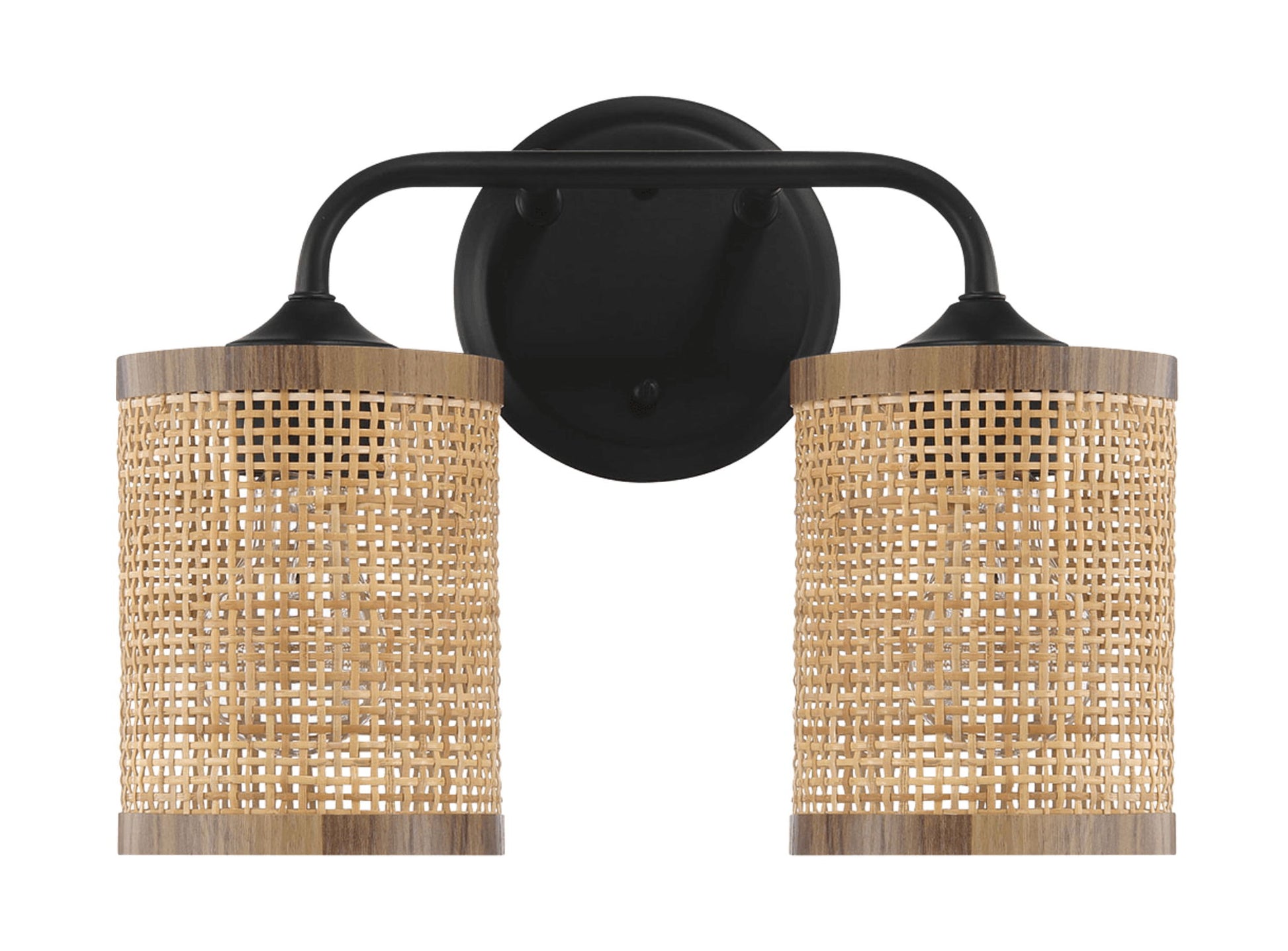 Quell - Double Light Vanity With Natural Shade Wall Lamp - Black / Rattan
